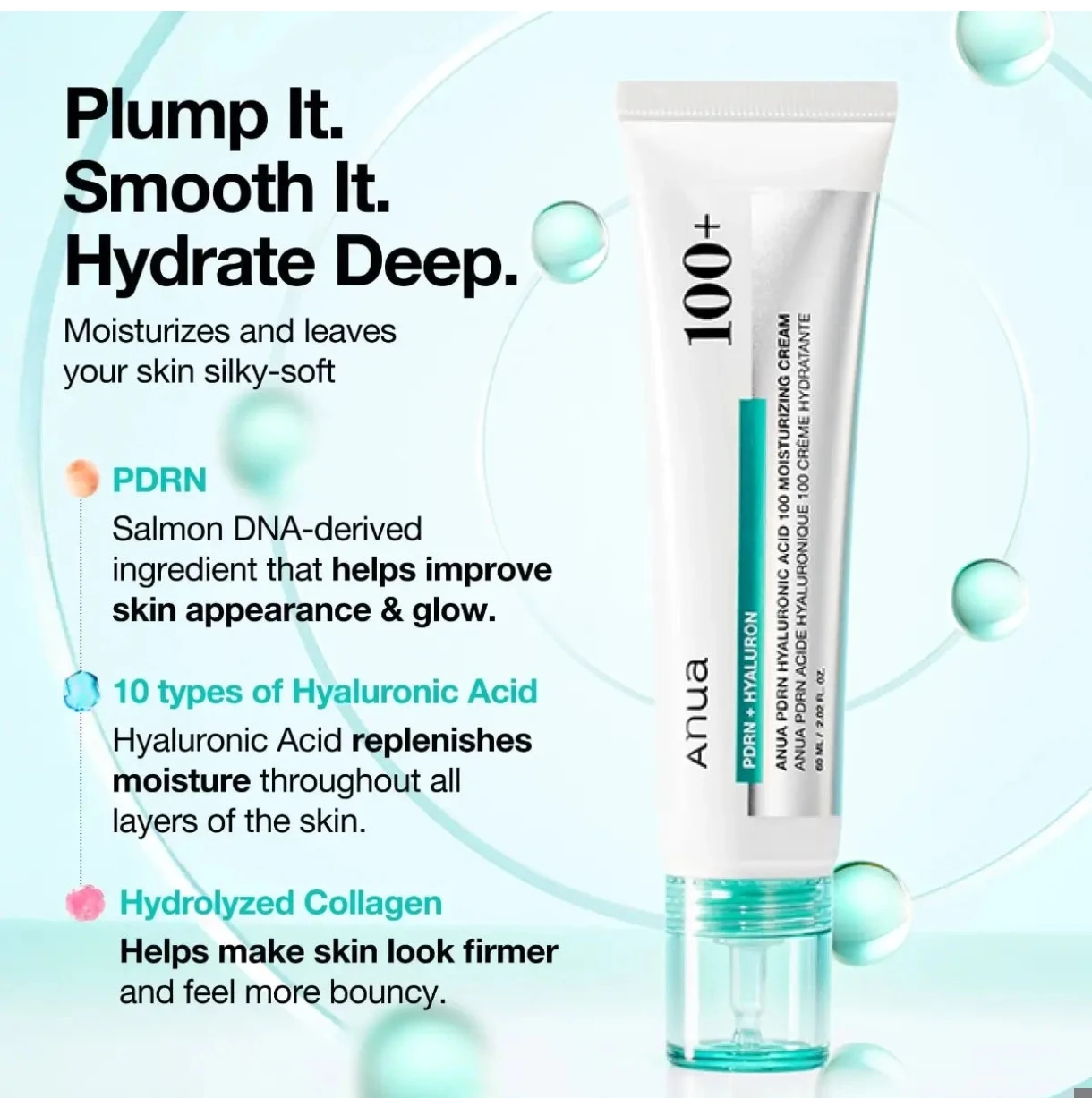 كريم انوا بحمض الهيالورونيك 100 للترطيب العميق هو ابتكار كوري متطور يجمع بين المركب البروتيني المستخلص من الحمض النووي للسلمون وعشرة أنواع من حمض الهيالورونيك والكولاجين المتحلل لتوفير ترطيب عميق يدوم حتى 100 ساعة. يتميز هذا الكريم الكوري بقوامه الخفيف ولونه الزمردي الفريد، ويحتوي على تركيبة ثلاثية الطبقات من المركب البروتيني بوزن جزيئي منخفض لامتصاص محسن مما يساعد على تجديد البشرة من الداخل ومنحها إشراقة صحية ونضرة. أثبت سريرياً أنه يحسن ترطيب الجلد بنسبة 11.23% ويدعم تحسين الكولاجين بنسبة 68.3. تركيبته خالية من العطور والألوان الصناعية، مصممة لمن يبحثون